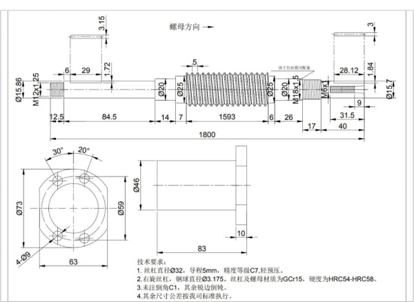 Fabricación de Ball Screw (tornillo de bolas). Se fabrica sobre diseño con muestra física.